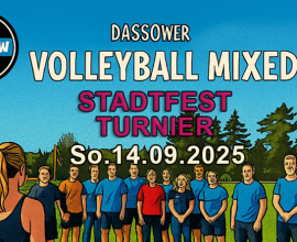 Dassow – Bei herrlichem Spätsommerwetter fand am Sonntag den 14.September, das diesjährige Mixed-Volleyball-Turnier auf dem Sportplatz in Dassow statt. Turnierleiterin Kathrin Bomba eröffnete das Turnier für 12 Mixed Mannschaften aus Selmsdorf,Stockelsdorf, Lübeck, Schwerin, Schlagsdorf, Kummer und Kalkhorst auf 4 Feldern.Den Höhepunkt bildete das packende Finale zwischen den Teams „Lüüübeck“ und dem Turniergastgeber „DAS-IS-SOW“. Nach einem…